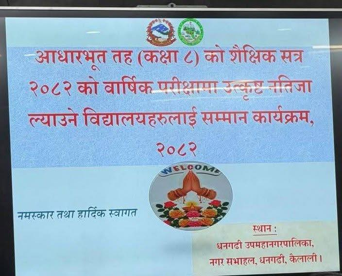 कक्षा ८ को उत्कृष्ट नतिजा ल्याउने बिद्यालयहरु धनगढी उपमहानगरपालिकाद्धारा सम्मानित